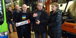 Khotyns Bürgermeister Andriy Dranchuk war zur Übergabe des Busses am Freitag, dem 3. Februar 2023, auf seinem Weg von Paris zurück in die Heimat eigens nach Teltow gekommen. „Ich habe auf einer Konferenz in Paris von der Partnerschaft mit Teltow erzählt und viel Begeisterung geerntet“, so Dranchuk. „Teltower und Khotyner kennen sich erst seit kurzer Zeit, aber das Tempo der Hilfe ist wirklich beeindruckend.“